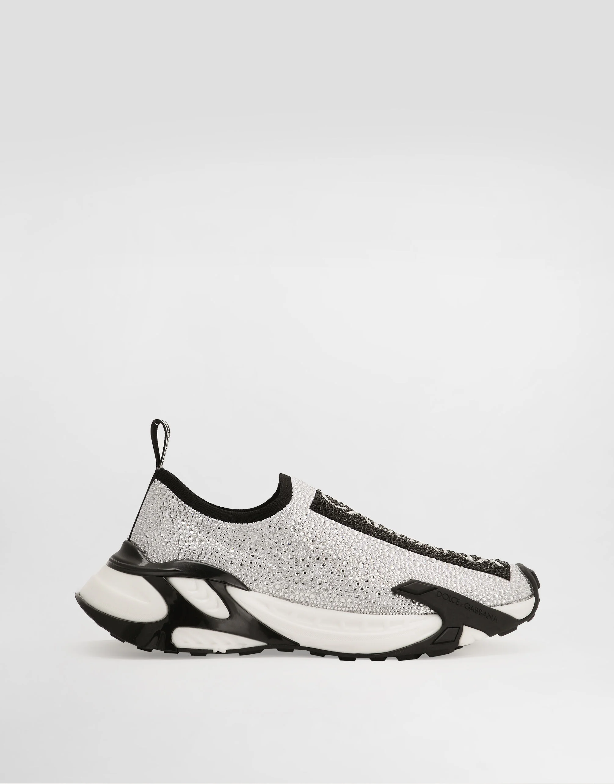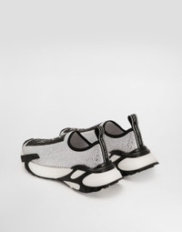 Fast sneakers with fusible crystals: • Multi-colored • Stretch mesh upper with a sock shape and fusible crystal embellishment • Branded, stretch tape on the back • Leather footbed with branded label • Two-tone rubber sole • Extra-light rubber bottom assembly • Item comes with themed packaging • Made in Italy Care And Details External composition: 80% Polyester 20% Viscose
