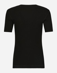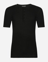 Fine-rib cotton jersey granddad-neck T-shirt: • Slim fit • Round neck • Button fastenings • Short sleeves • Dolce&Gabbana logo label • Black • The piece measures 74 cm from the rear collar seam on a size IT 48 • The model is 185 cm tall and wears a size IT 48 • Made in Italy Care And Details External composition: 100% Cotton