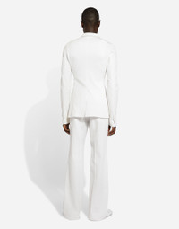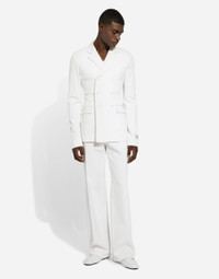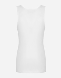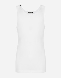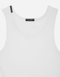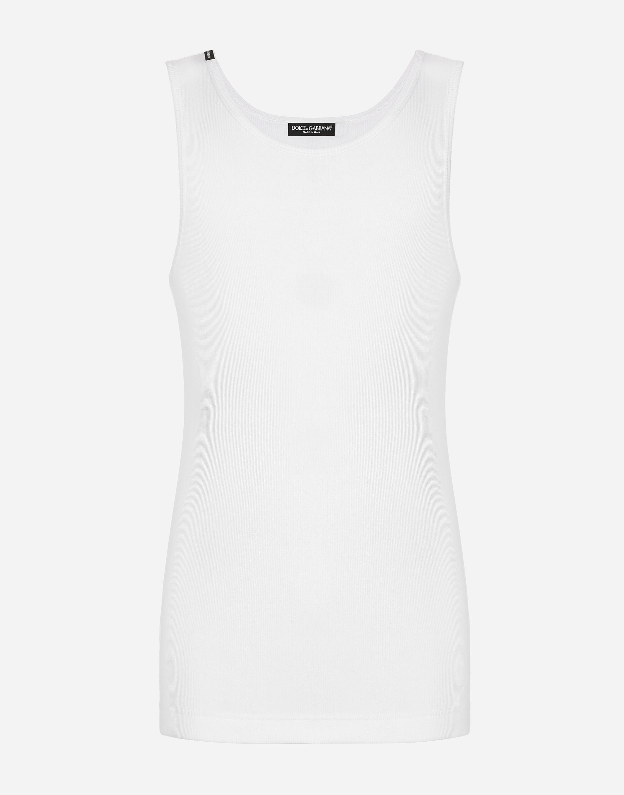 The SS24 “Stile” Collection recounts and clearly presents a strong concept: the unique and unmistakable style of Dolce&Gabbana. A word that is more than a statement. It is a concept! The designers work with surfaces, textures, layers and color nuances, as well as the sheen and fineness of the materials themselves, creating a “Stylish” collection. We’re going back to our roots with the desire to reaffirm the “Stile” - style -, flair and iconic DNA of the brand. Fine-rib cotton singlet with wide shoulders: • White • Slim fit • Round neck • Dolce&Gabbana logo label • The piece measures 69 cm from the rear collar seam on a size IT 48 • Made in Italy External composition: 100% Cotton