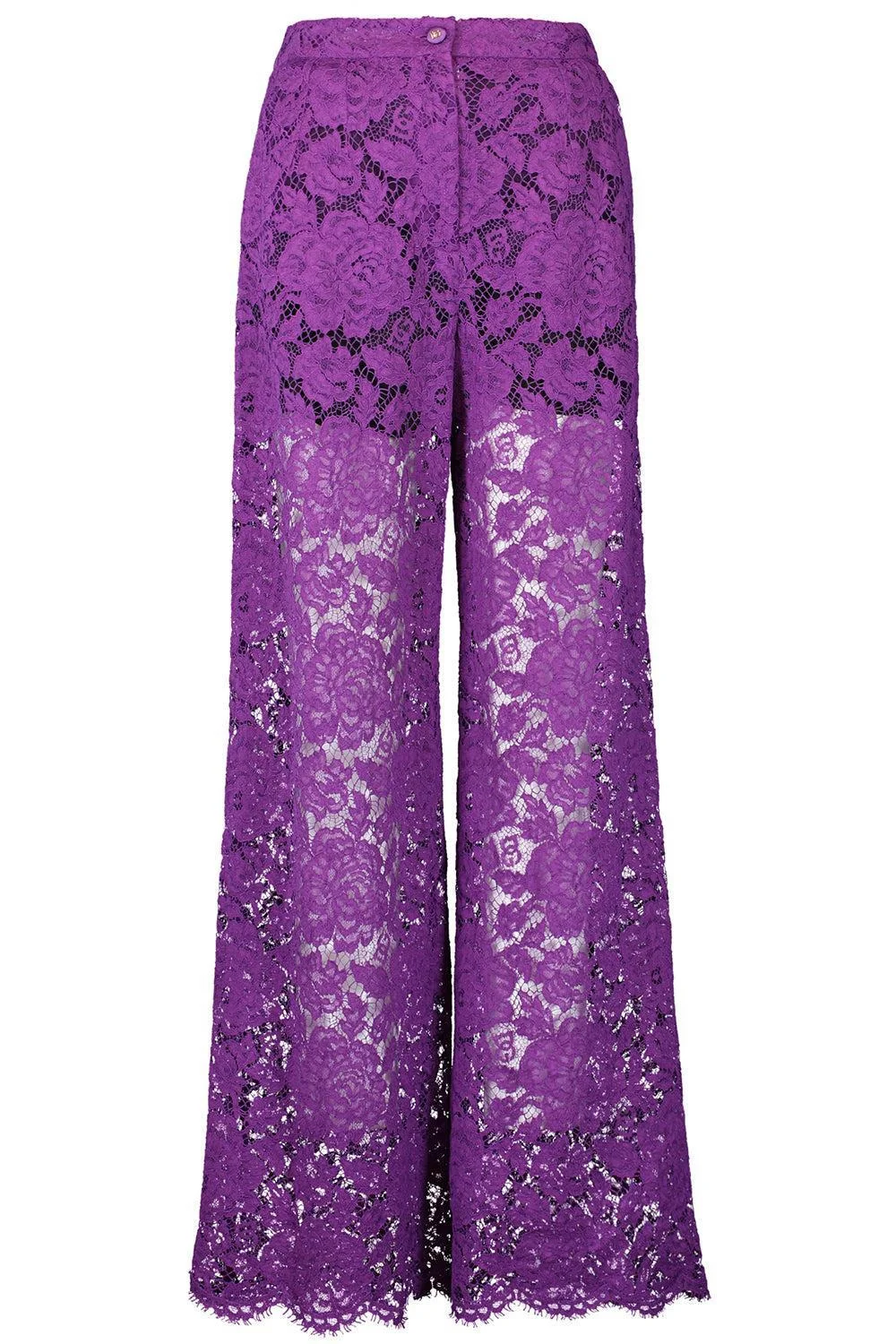 DETAILS AND INSIGHT Dolce & Gabbana flare floral logo lace pants in viola. 35%Cotton+24%Nylon+41%Rayon 09%Spandex+91%Silk Hi Rise, Flare Leg Dry Clean Made In Italy Style FTCPTT-HLM7L-F0571