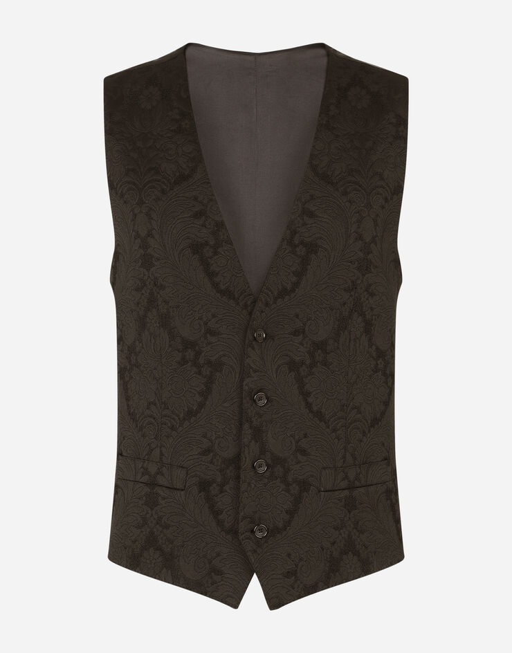 In the Dolce&Gabbana collection, our Sicilian roots and tailoring expertise mix with layering and new volume to create a sophisticated and contemporary update on our signature aesthetic. Single-breasted floral jacquard vest: • 4 button-fastening at the front • Two welt pockets on the front • Adjustable rear strap with branded metal buckle • The piece measures 60 cm - 23.6 inches from the rear collar seam on a size IT 48 • The model is 185 cm - 72.8 inches tall and wears a size IT 48 • Made in Italy Care And Details External composition: 56% Polyester 25% Acetate 17% Viscose 2% Spandex