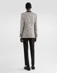 Elegance, tailored lines and sparkling details define the Dolce&Gabbana Holiday collection. Sixties inspirations blend with a contemporary aesthetic. For him, structured jackets and cuts that enhance the silhouette for her, silver brocade and crystals illuminate festive looks. Each piece stands out for its fine materials, attention to detail and distinctive style. This single-breasted jacket represents a perfect balance between elegance and modernity, ideal for the man looking for a distinctive and sophisticated garment. Single-breasted floral lame jacket: • Silver • Shawl lapels • Semi-traditional lined • Length from shoulder is 73.5 on size 48 IT • Made in Italy External composition: 28% Acrylic, 28% Metallic Polyester, 22% Silk, 14% Virgin Wool, 5% Polyamide, 3% Polyester Internal composition: 100% Silk