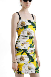 DETAILS AND INSIGHT Dolve & Gabbana gardenia ruched dress in gardenia giallo. Silk Charmeuse Dry Clean Made in Italy Style F6TMHT-FSA7F-HG5JB