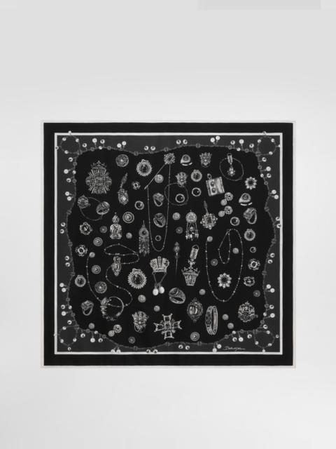 This scarf is the perfect accessory to add a touch of elegance and color to your outfit. Made of silk twill, it features micro-designs and the logo for a distinctive and refined look. Silk twill scarf with micro-design and logo: • Multi-colored • Measurements: 70 x 70 cm • Made in Italy The difference in the print placement that you may find on this product is a feature of Dolce&Gabbana’s “Handmade” pieces. A detail that makes every garment or accessory unique and exclusive. External Composition: 100% Silk