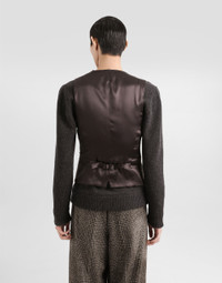 The scene is set for Dolce&Gabbana's distinctive and iconic aesthetic codes in the Collection from Men's Fall/Winter 2025 Fashion Show. The evening lights up with radiant brooches and is enriched with classic suits and blazers of timeless elegance. This single-breasted glen plaid alpaca blend vest is an elegant and versatile garment, perfect for completing a formal look with a touch of sophisticated style. Glen plaid vest: • Multi-colored • No lapel • Single-breasted with buttons • Welt pocket • Lined • The model is 185 cm tall and wears a size 48 IT • Made in Italy External Composition: 37% Silk, 20% Alpaca, 17% Cotton, 15% Wool, 11% Polyamide
