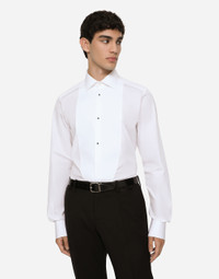 In the Dolce&Gabbana Men's collections; the most sought-after luxury is combined with the craftsmanship and tailoring that distinguish impeccably cut and extremely refined garments. Cotton poplin tuxedo shirt. • French collar • Stiff pique bib • French cuffs • Small black enamel buttons • Yoke and rear box pleat • Item measures 80 cm from the back neckline on an Italian size 48 • The bust measures 61 cm and wears an Italian size 48 • Made in Italy Composition: 100% Cotton