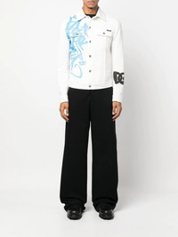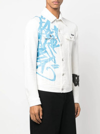 graffiti-print denim jacket cloud white cotton blend graffiti print logo print at the arm logo patch at the chest classic collar embossed silver-tone buttons front button fastening long sleeves chest flap pocket straight hem Made in Italy Composition Cotton 98%, Elastane 2% SIZE & FIT Model measurements Height 6 ft 2 in(1.87 m) Bust/Chest 38.18 in(97 cm) Hips 36.61 in(93 cm) Waist 29.13 in(74 cm) Washing instructions Machine Wash