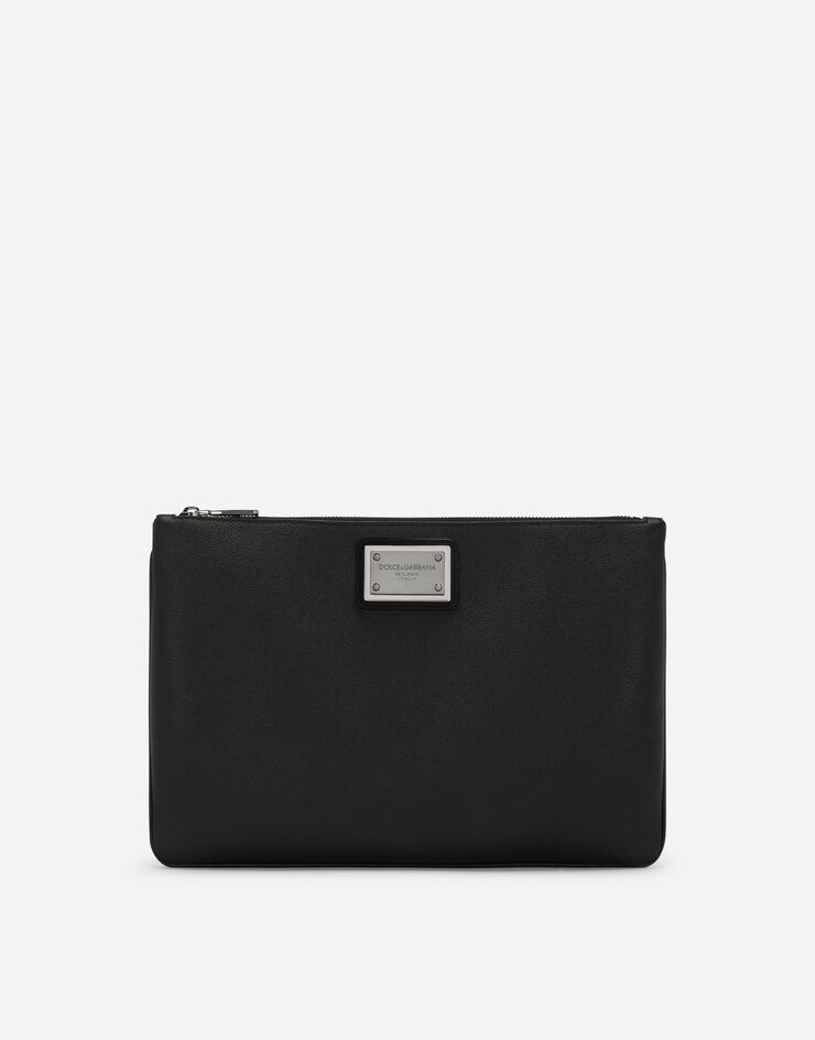 • Top fastening with zipper and slider with logo • Nylon lining with flat pocket • Item comes with a branded dust bag • Measurements: 21 x 31.5 x 1 cm • Made in Italy Care And Details External composition: 55% Calfskin 40% Polyamide 5% Acrylic Internal composition: 100% Polyamide