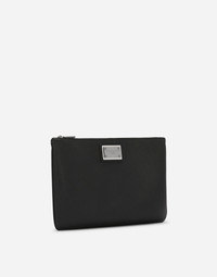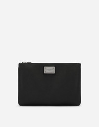 Grainy calfskin and nylon pouch