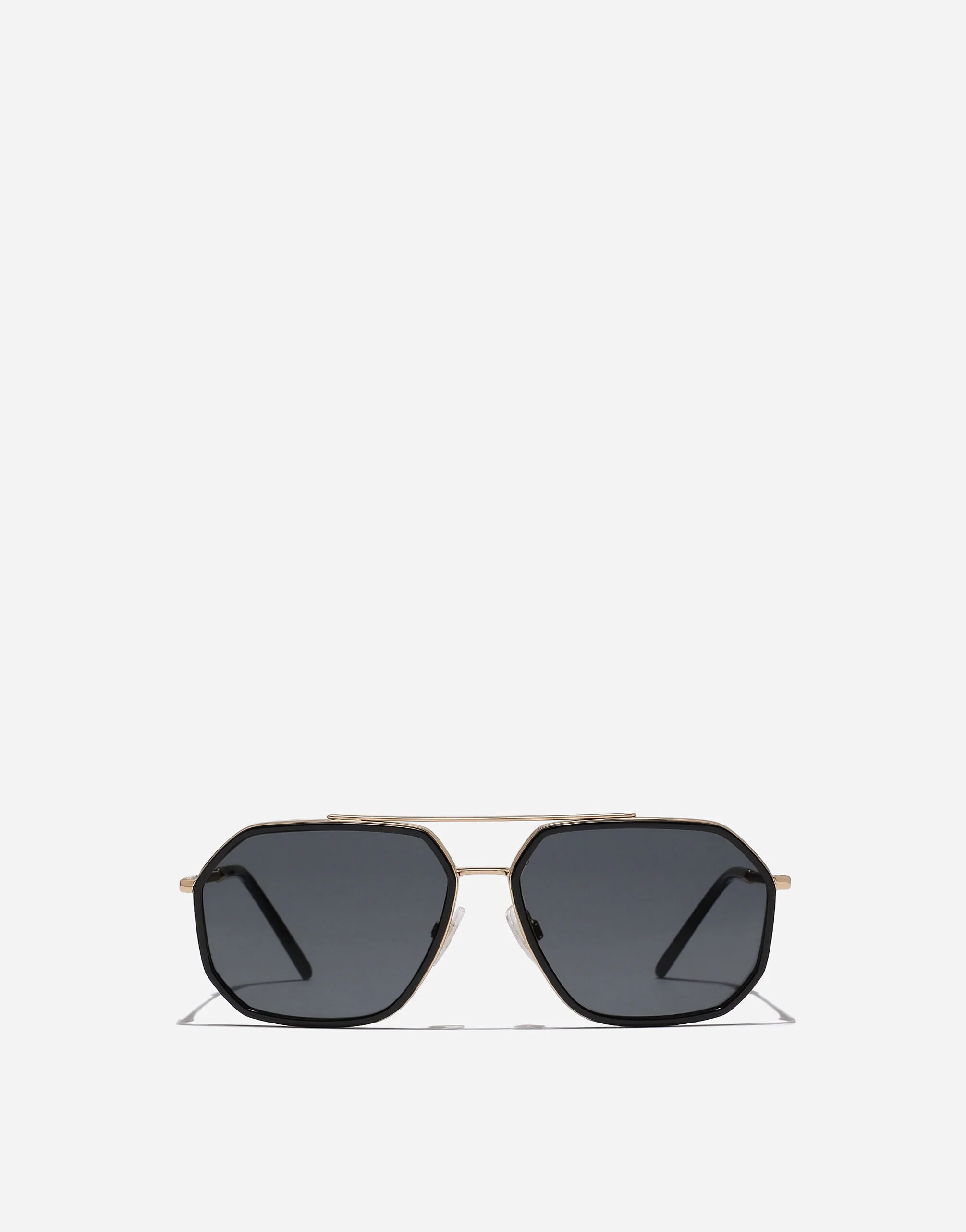 Reinterpretation of the Dolce&Gabbana heritage with a contemporary and elegant touch. •Black and gold metal frame •Gold metal temples •Grey polarized lenses •100% UV protection •Size lens - bridge - temple: 60 - 15 - 145 mm •Fitting: Adjustable nosepad •Packaging: Istitutional •Made in Italy