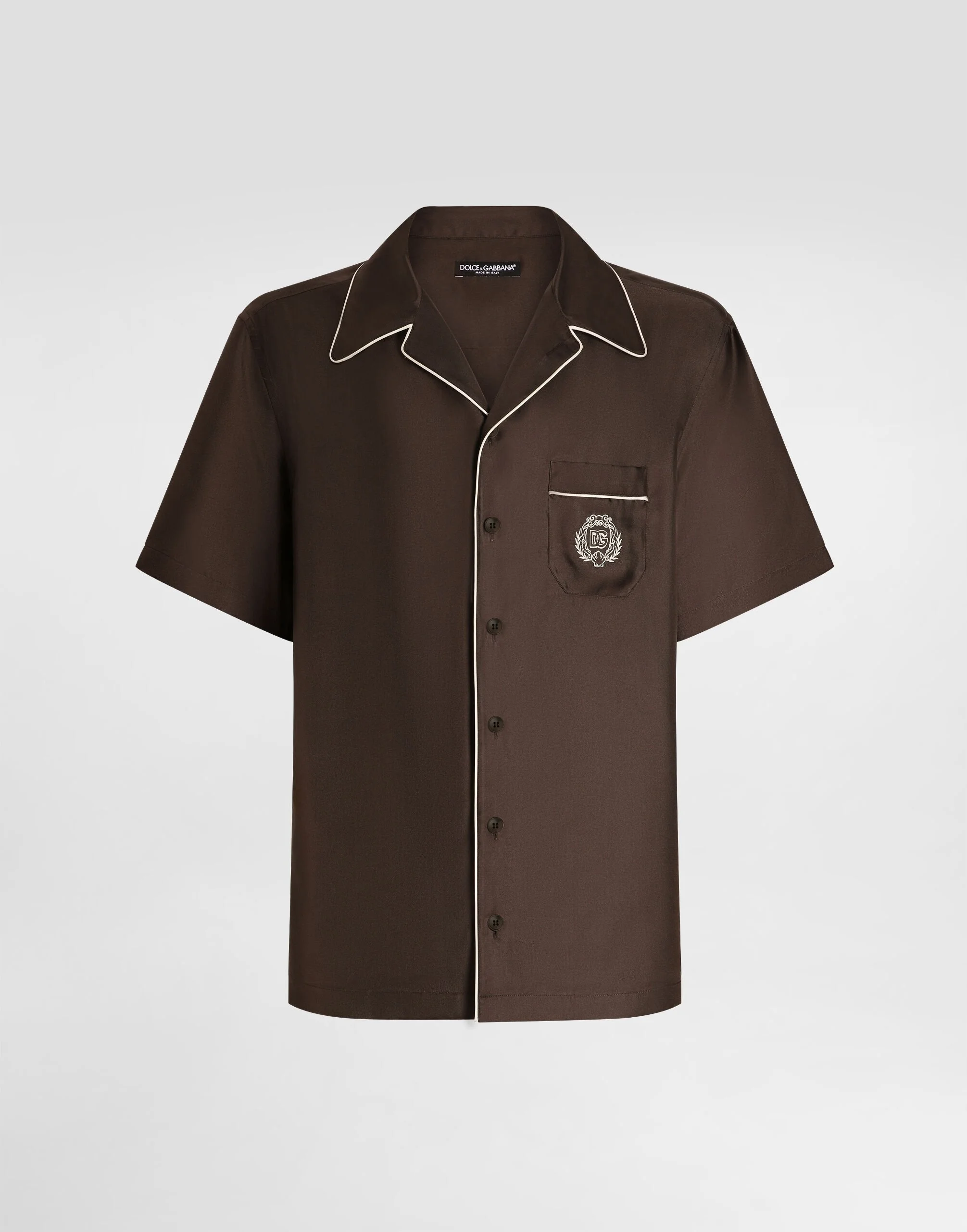 This silk twill shirt represents the perfect combination of elegance and comfort, ideal for the man who loves to stand out with style. Hawaii silk twill shirt: • Brown • Hawaii rounded collar • With pocket • Short sleeves • The model is 185 cm tall and wears size 48 IT • Made in Italy External Composition: 100% Silk