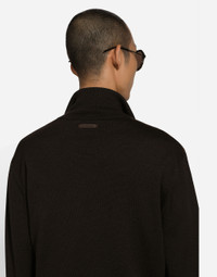The Palermo collection represents the link between the Sicilian man’s world and the unspoiled nature of the island. A language marked by warm hues – sand, cream, Nero Sicilia black – floral paintings and iconic prints. The Dolce&Gabbana closet must-haves have been reworked in different materials, in pursuit of a new form of harmony. A collection rich in suggestion, such as the stripes inspired by the old mattresses of the 1940s and 1950s, and the timeless aesthetic of the looks. High-necked leather and wool jacket: • Brown • Regular fit • Long sleeves • Zipper fastening • Leather body • 14-gauge plain knit • The piece measures 68 cm from the shoulder seam on a size IT 50 • Made in Italy External composition: 65% Virgin Wool 35% Sheepskin