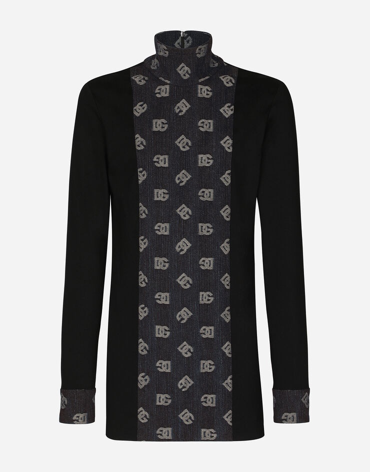 High-necked T-shirt with jacquard DG details