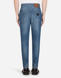 The iconic slim and skinny jeans models feature the new denim with sophisticated cuts and volumes, rewriting the concept of comfort and modernity. High waisted jeans in stretch medium washed blue denim with whiskering: • Regular fit • Button closure and hidden zip • Western pockets • Metallic Dolce&Gabbana logo plaque on the back and new leather label • The crotch measures 29 cm - 11.4 inches from the centre back of the belt and the bottom is 16 cm - 6.3 inches wide on a size 48 IT • The piece measures 105 cm - 41.3 inches from along the side on a size 48 IT • The model is 185 cm - 72.8 inches tall and wears a size 48 IT • Made in Italy Care And Details Composition: 98% Cotton 2% Elastane