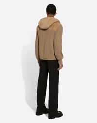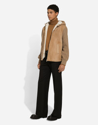 Tailoring means beauty, proportions, skilled cuts and sophisticated details. The FW 24-25 Sartoriale Collection builds on this solid foundation to define new ways of pairing colors, materials and textures. Sicilian rock gray envelops different textures, while Nero Sicilia black adorns textile and velvet weaves and camel pairs with orange. Various types of pinstripes, textured-effect cashmere, double fabrics, suede and denim meet in the looks. Sheepskin jacket with knit inserts and hood: • Beige • Regular fit • Zipper fastening • Welt pockets on the side • Shearling lining • The piece measures 68 cm from the rear collar seam on a size IT 48 • Made in Italy External composition: 100% Sheepskin