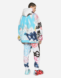 Technical jersey hoodie with spray-paint graffiti print. • Oversize fit • Drawstring hood with branded metal aglets • The piece measures 69 cm from the rear collar seam on a size M • The model is 185 cm tall and wears a size M • Made in Italy Care And Details External composition: 80% Cotton 20% Polyester