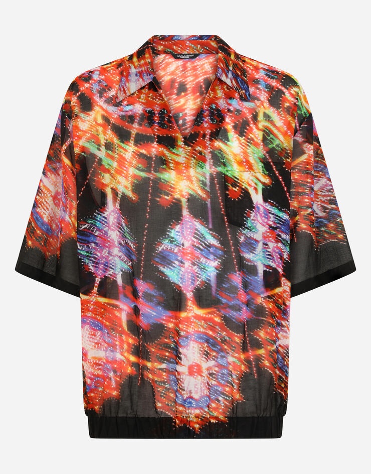 The “DG Light Therapy” fashion show is a tribute to life itself, positivity and folklore. Distinctive luminaries become wonderful photographic prints to create special, iconic pieces when combined with embroidery, crystals, sequins and jacquard designs. Cotton batiste shirt with illumination print: • Loose Hawaiian fit • Shirt-style collar • Short sleeves • Front patch pocket • Stretch ankle cuffs • The piece measures 77 cm - 30.3 inches from the rear collar seam on a size IT 40 • The model is 185 cm - 72.8 inches tall and wears a size IT 40 • Made in Italy Care And Details External composition: 100% Cotton