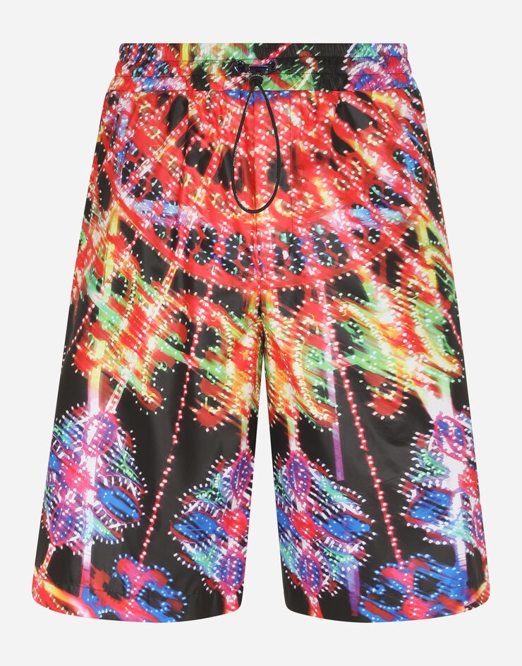The “DG Light Therapy” fashion show is a tribute to life itself, positivity and folklore. Distinctive luminaries become wonderful photographic prints to create special, iconic pieces when combined with embroidery, crystals, sequins and jacquard designs. Illumination-print light nylon shorts with metal DG logo: • Regular fit • Stretch waistband with drawstring • Front welt pockets and back welt pocket with zipper • The item measures 56 cm - 22 inches on the outer leg and the hem is 36 cm - 14.2 inches wide on a size IT 48 • The model is 185 cm - 72.8 inches tall and wears a size IT 48 • Made in Italy Care And Details External composition: 100% Polyester