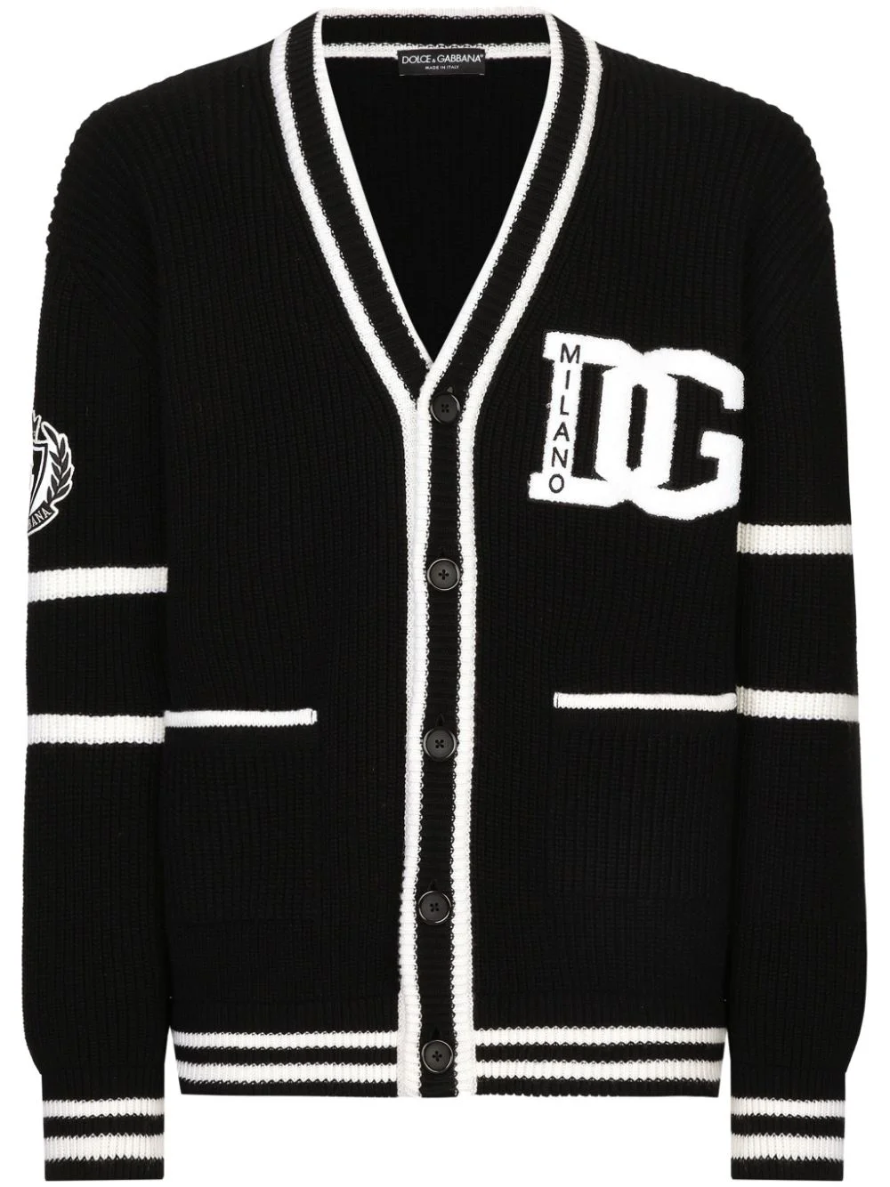 intarsia-knit cardigan Highlights - Black/white - Virgin wool - Knitted construction - Intarsia-knit logo - Front button fastening - Two patch pockets Made in Italy Composition Virgin Wool 100%