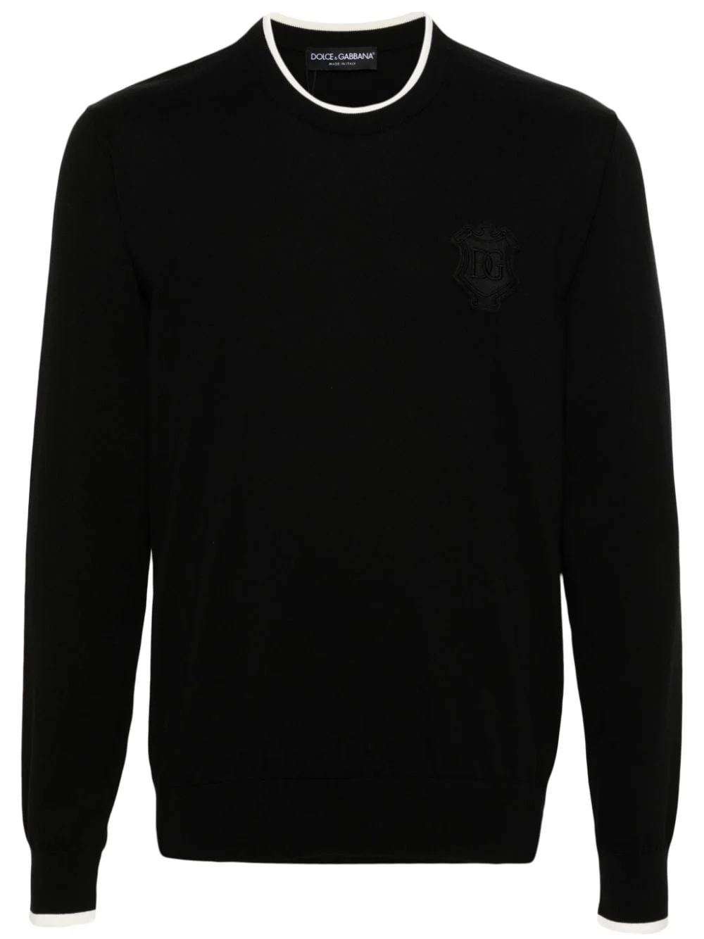 logo-embroidered sweater Highlights - Black - Cotton - Fine knit - Crew neck - Ribbed and stripe trim - Embroidered logo at the chest - Long sleeves Made in Italy Composition Polyester 100%, Cotton 100% SIZE & FIT Model measurements Height 6 ft 2 in(1.87 m) Bust/Chest 38.18 in(97 cm) Hips 36.61 in(93 cm) Waist 29.13 in(74 cm) FittingInformation Designed for a regular fit, offering a comfortable loose fit throughout the body The ribbed hem offers a close, comfortable fit Made with a midweight knit, this piece offers some stretch