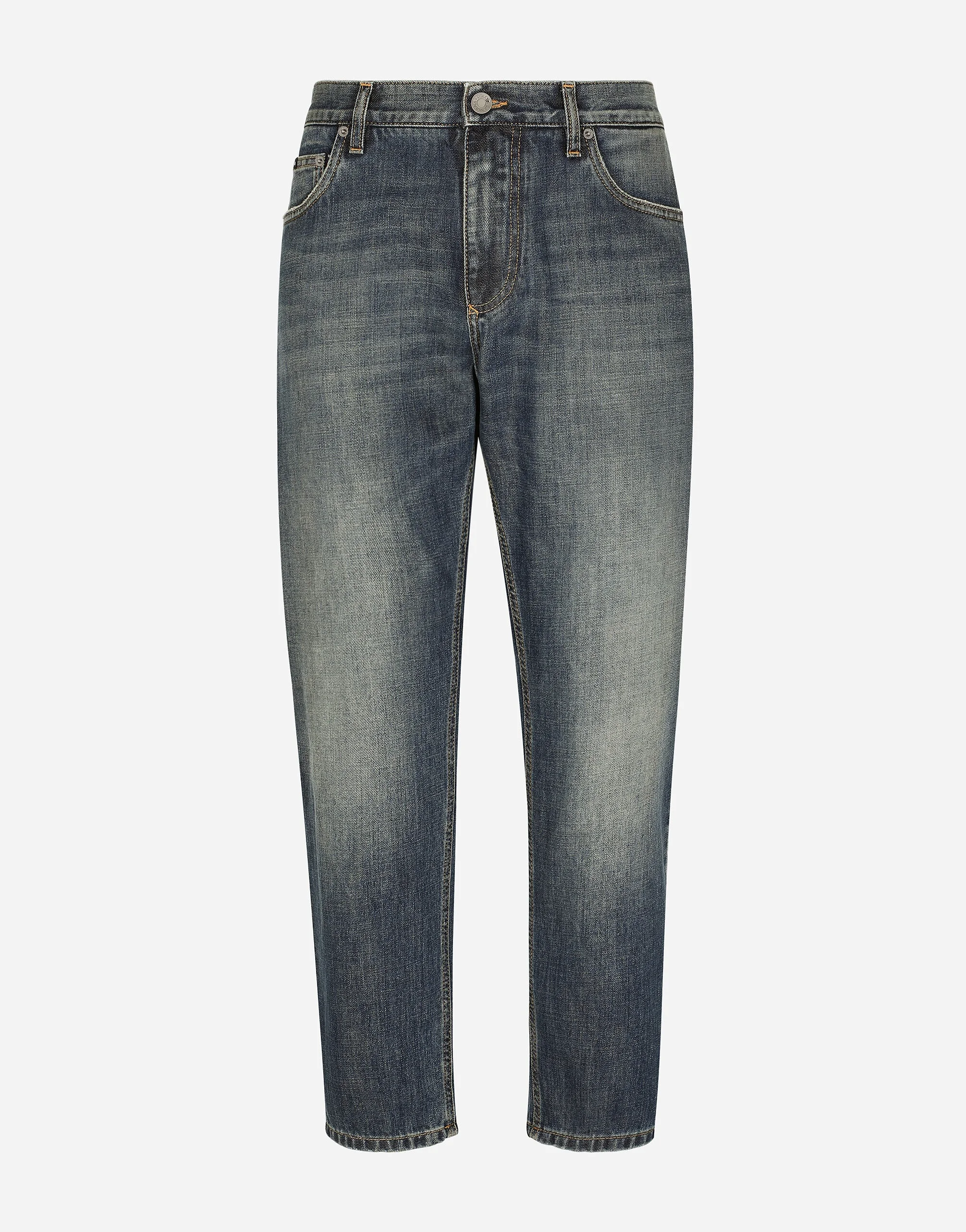 Five-pocket loose jeans in light blue wash stretch denim: • Loose fit • Fly-covered zipper and button fastening • Metal Dolce&Gabbana logo tag on the back • The item measures 99 cm on the outer leg and the hem is 18 cm wide on a size IT 48 • The model is 185 cm tall and wears a size IT 48 • Made in Italy Care And Details External composition: 98% Cotton 2% Spandex