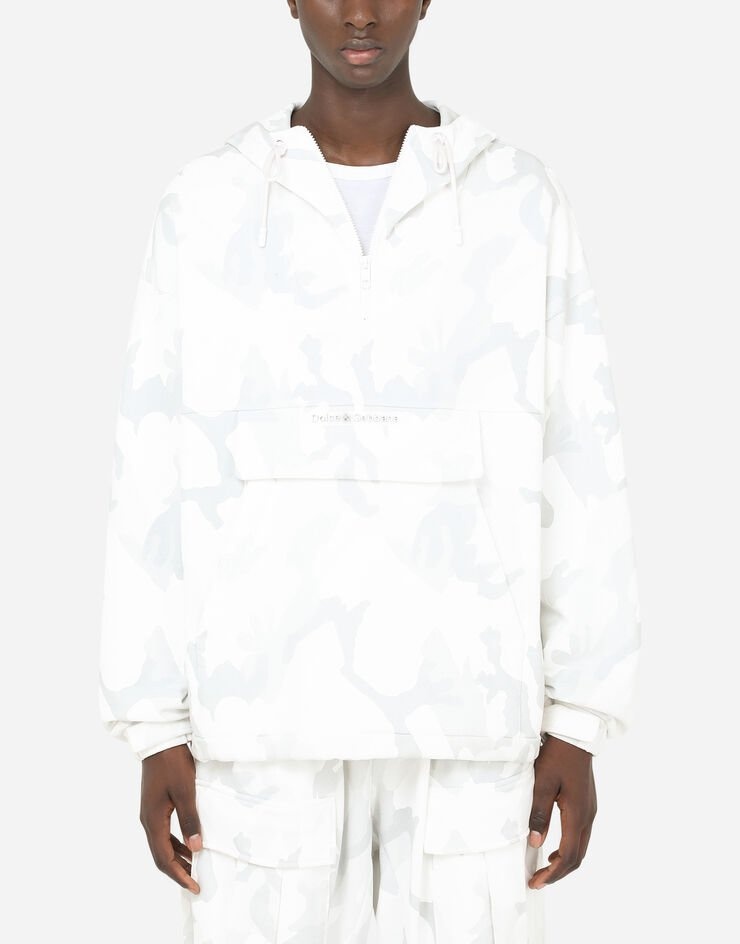 Camouflage, a signature Dolce&Gabbana print, has been given a contemporary makeover. Coming in burgundy, black/white and pure white, it pairs perfectly with the floral, stripe and iconic polka dot motifs. Cotton jersey sweatshirt with camouflage print and rubberized 3D Dolce&Gabbana patch: • Loose fit • Drawstring hood with branded metal aglets • Pouch pockets with flap • Drawstring hem and cuffs with hook-and-loop fastening • The piece measures 72 cm - 28.3 inches from the rear collar seam on a size M • The model is 185 cm - 72.8 inches tall and wears a size M • Made in Italy Care And Details External composition: 100% Cotton