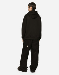 Cotton jersey hoodie with print and fusible rhinestone embellishment: • Regular fit • Drawstring hood with branded metal aglets • Pouch pocket • Stretch knit hem and cuffs • Black • The piece measures 69 cm from the rear collar seam on a size IT 48 • The model is 185 cm tall and wears a size IT 48 • Made in Italy Care And Details External composition: 100% Cotton