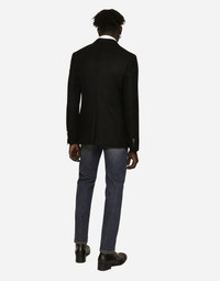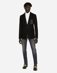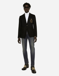 Tailored single-breasted deconstructed jacket in virgin wool and cashmere with heraldic DG logo patch: • Black • Regular fit • Notched lapels • Double-button fastening on the front • Outer flap pockets and breast pocket, and inner welt pockets with button • Buttoned cuffs • Central vent • Lined • The piece measures 73.5 cm from the rear collar seam on a size IT 48 • The model is 185 cm tall and wears a size IT 48 • Made in Italy Care And Details External composition: 90% Virgin Wool 10% Cashmere Internal composition: 100% Silk