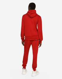 Jogging pants in cotton jersey with a metal tag featuring the Dolce&Gabbana logo: • Red •Regular fit •Stretch waistband with drawstring and branded metal aglets • Front welt pockets and back welt pocket with zipper •Stretch ankle cuffs •The item measures 105 cm on the outer leg on a size IT 48 •The model is 185 cm tall and wears a size IT 48 •Made in Italy Care And Details External composition: 100% Cotton