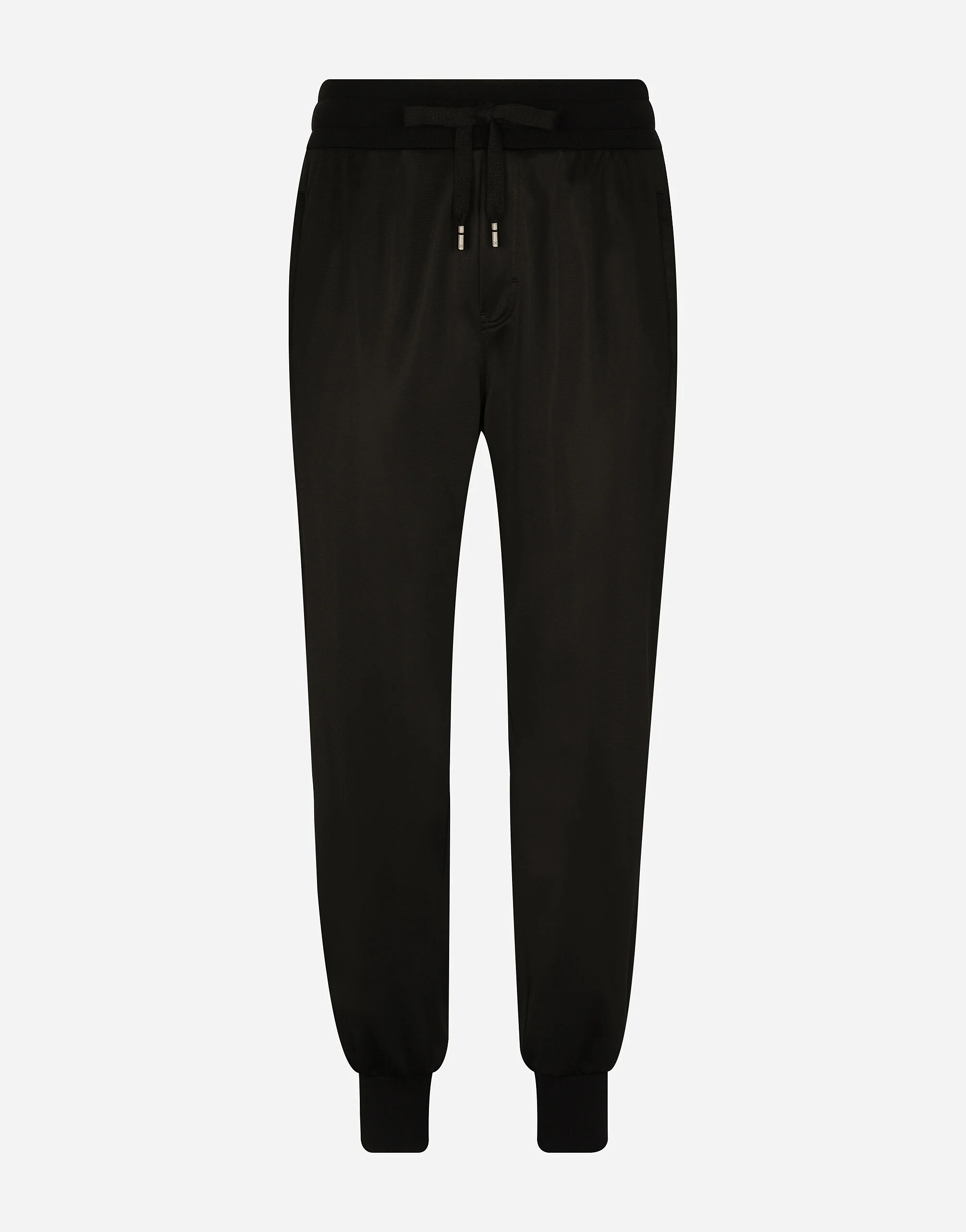 Jogging pants in technical jersey with a metal tag featuring the Dolce&Gabbana logo: • Regular fit • Stretch waistband with drawstring and branded aglets • Front welt pockets and back welt pocket with zipper • Stretch ankle cuffs • The item measures 96 cm on the outer leg on a size IT 48 • The model is 185 cm tall and wears a size IT 48 • Made in Italy Care And Details External composition: 100% Polyester