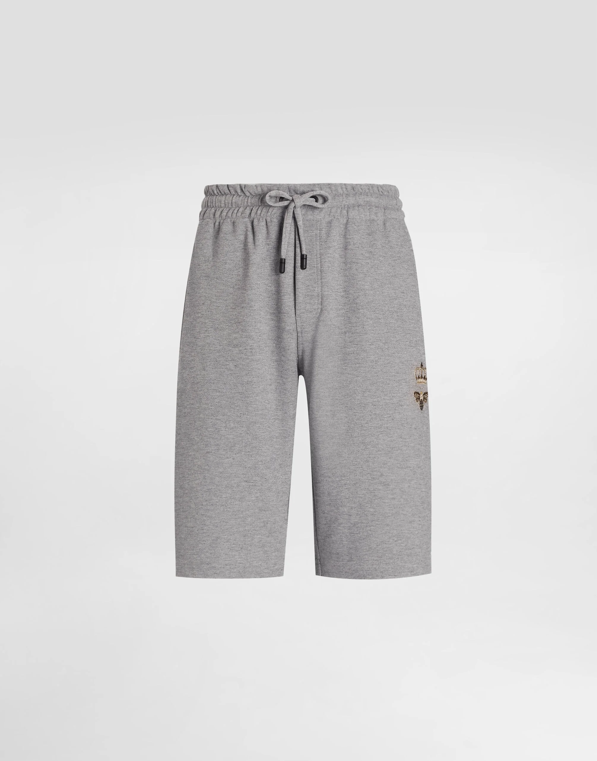 These technical jersey jogging shorts feature lurex embroidery: • Grey •Regular fit •Stretch waistband with drawstring and branded metal aglets •Front welt pockets and back welt pocket with zipper •The item measures 52 cm on the outer leg and the hem is 27 cm wide on a size IT 48 •The model is 185 cm tall and wears a size IT 48 •Made in Italy Care And Details External composition: 77% Cotton 23% Polyester