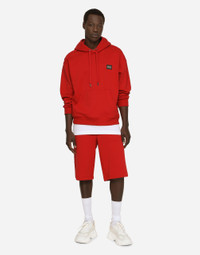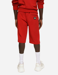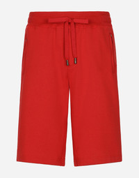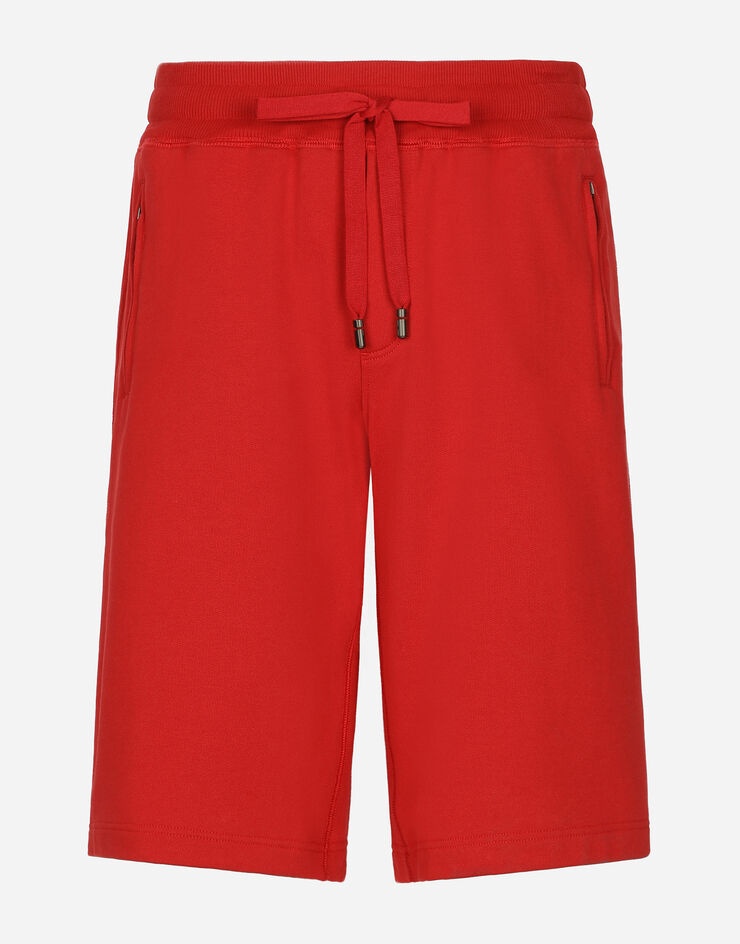 Jogging shorts in cotton jersey with a metal tag featuring the Dolce&Gabbana logo: • Red •Regular fit •Stretch waistband with drawstring and branded metal aglets •Front welt pockets and back welt pocket with zipper •The item measures 62 cm on the outer leg and the hem is 29 cm wide on a size IT 48 •The model is 185 cm tall and wears a size IT 48 •Made in Italy Care And Details External composition: 100% Cotton