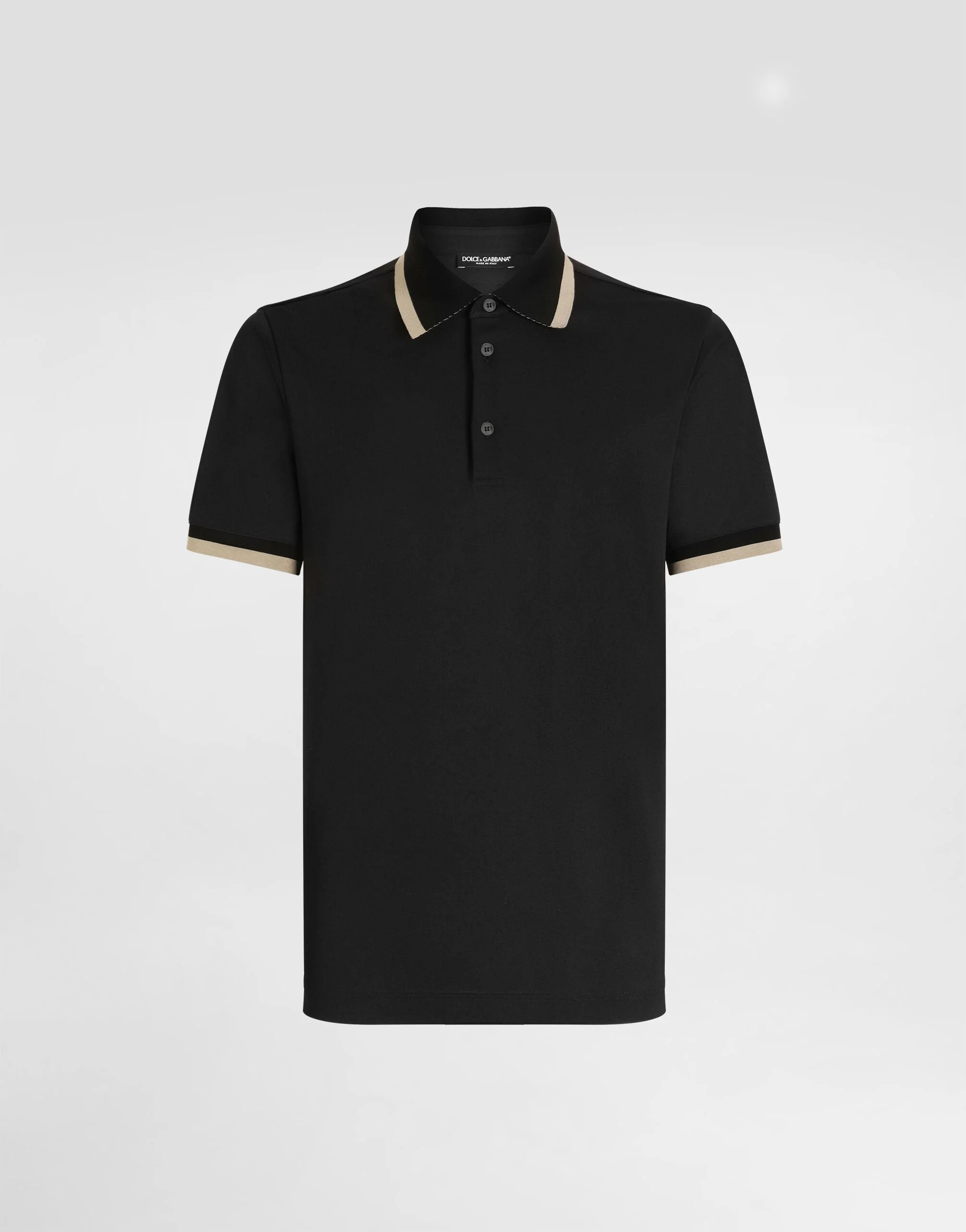 Jersey polo shirt: • Black • Short sleeves • Made in Italy • The model is 185 cm tall and wears a size 48 IT External Composition: 100% Polyester