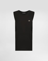 The DNA Men's Collection reimagines daily wear with bold contrasts, meticulous details, and innovative silhouettes. Outerwear stands out with clean lines and high-tech materials, merging sportiness with sophistication in sweaters, sweatshirts, and trousers. A striking color palette, including Black Sicily, caramel, cream, burgundy, and stone gray, pairs with iconic prints like Leopard and Polka dots, enhancing the collection's authentic and refined look. Narrow-shouldered singlet in cotton jersey: • Black • Oversize fit • Round neckline • Metal Dolce&Gabbana logo tag • The piece measures 74 cm from the center back on a size M • Made in Italy External composition: 100% Cotton