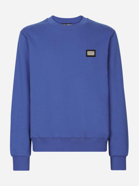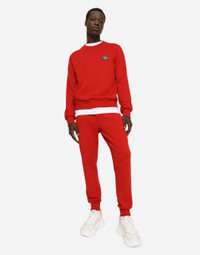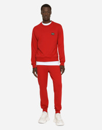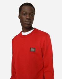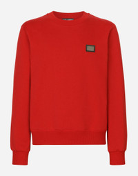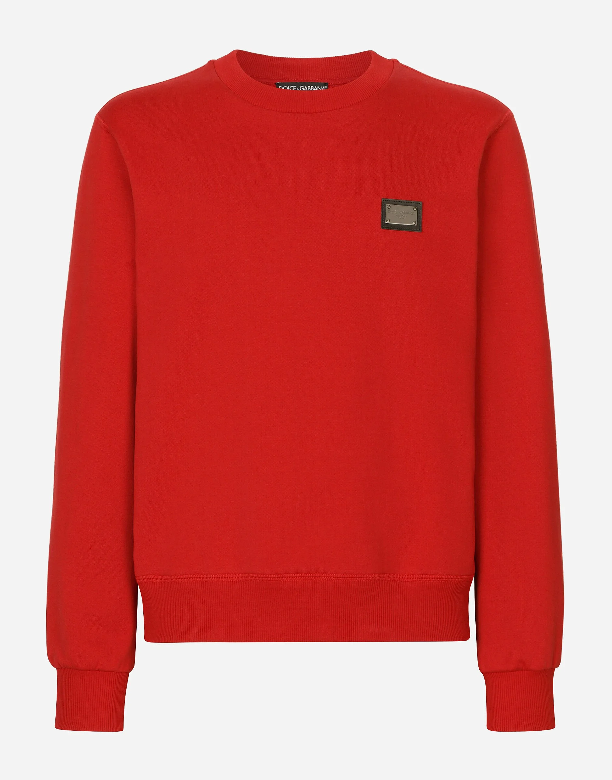 Cotton jersey round-neck sweatshirt with metal tag featuring the Dolce&Gabbana logo: • Red •Regular fit •Stretch knit hem, neck and cuffs •The piece measures 69 cm from the rear collar seam on a size IT 48 •The model is 185 cm tall and wears a size IT 48 •Made in Italy Care And Details External composition: 100% Cotton