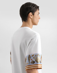 This short-sleeved jersey t-shirt is an essential for the modern man, featuring a minimalist design with refined details such as a patch pocket. Jersey t-shirt with print: • White • Regular fit • Bottom width 74 cm on size 48 IT • The model is 185 cm tall and wears a size 48 IT • Made in Italy External Composition: 83% Cotton, 17% Silk