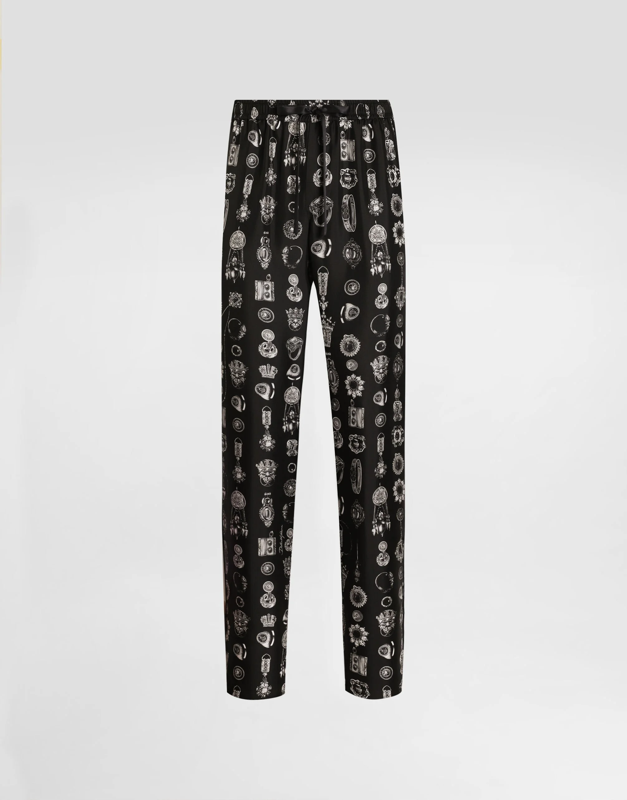 These pajama pants are perfect for those looking for comfort without sacrificing style. With refined details such as side piping and jewel print, they are ideal for a casual yet refined look. Jewel-print twill trousers: • Multi-colored • French pockets • Right back pocket • Elastic waistband and drawstring loops • Faux lacing with stitching for flap • The model is 185 cm tall and wears a size 48 IT • Made in Italy The difference in the print placement that you may find on this product is a feature of Dolce&Gabbana’s “Handmade” pieces. A detail that makes every garment or accessory unique and exclusive. External Composition: 100% Silk