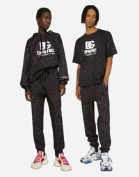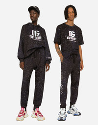 Multi-colored technical stretch jersey jogging pants with DG Game print: • Regular fit • Stretch waistband with drawstring and branded metal aglets • Front welt pockets and back welt pocket with zipper • Stretch ankle cuffs • The item measures 99 cm on the outer leg on a size IT 48 • The model is 185 cm tall and wears a size IT 48 • Made in Italy Care And Details External composition: 92% Polyester 8% Spandex