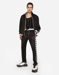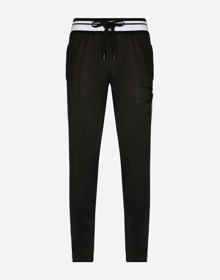 Technical jersey jogging pants with side bands and the embossed DG logo. • Regular fit • Stretch jacquard waistband with drawstring and branded metal aglets • Front welt pockets and back welt pocket with zipper • The item measures 100 cm on the outer leg and the hem is 18 cm wide on a size IT 48 • The model is 185 cm tall and wears a size IT 48 • Made in Italy Care And Details External composition: 100% Polyester