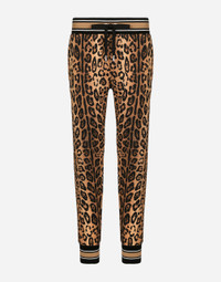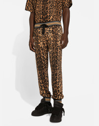 The new Crespo Leo collection is an ode to the leopard print that made Dolce & Gabbana’s history and which went on, over time, to become an emblem of boldness and sheer eccentricity. Every season it is reinterpreted and reworked in new bold and surprising takes, in an unmistakable blend of creativity, tradition and Mediterranean flair that merges memories and cultural references, thereby creating iconic, timeless pieces that stand apart from any trend, infused with great emblematic value. Cotton jogging pants with leopard-print Crespo: • Multi-colored • Regular fit • Elasticated contrasting ribbed waistband with drawstring and metal branded aglets • Front welt pockets and back welt pocket with zipper • Dolce&Gabbana logo tag on the back • Ribbed stretch ankle cuffs • The item measures 104 cm on the outer leg and the hem is 13 cm wide on a size IT 48 • Made in Italy External composition: 100% Cotton