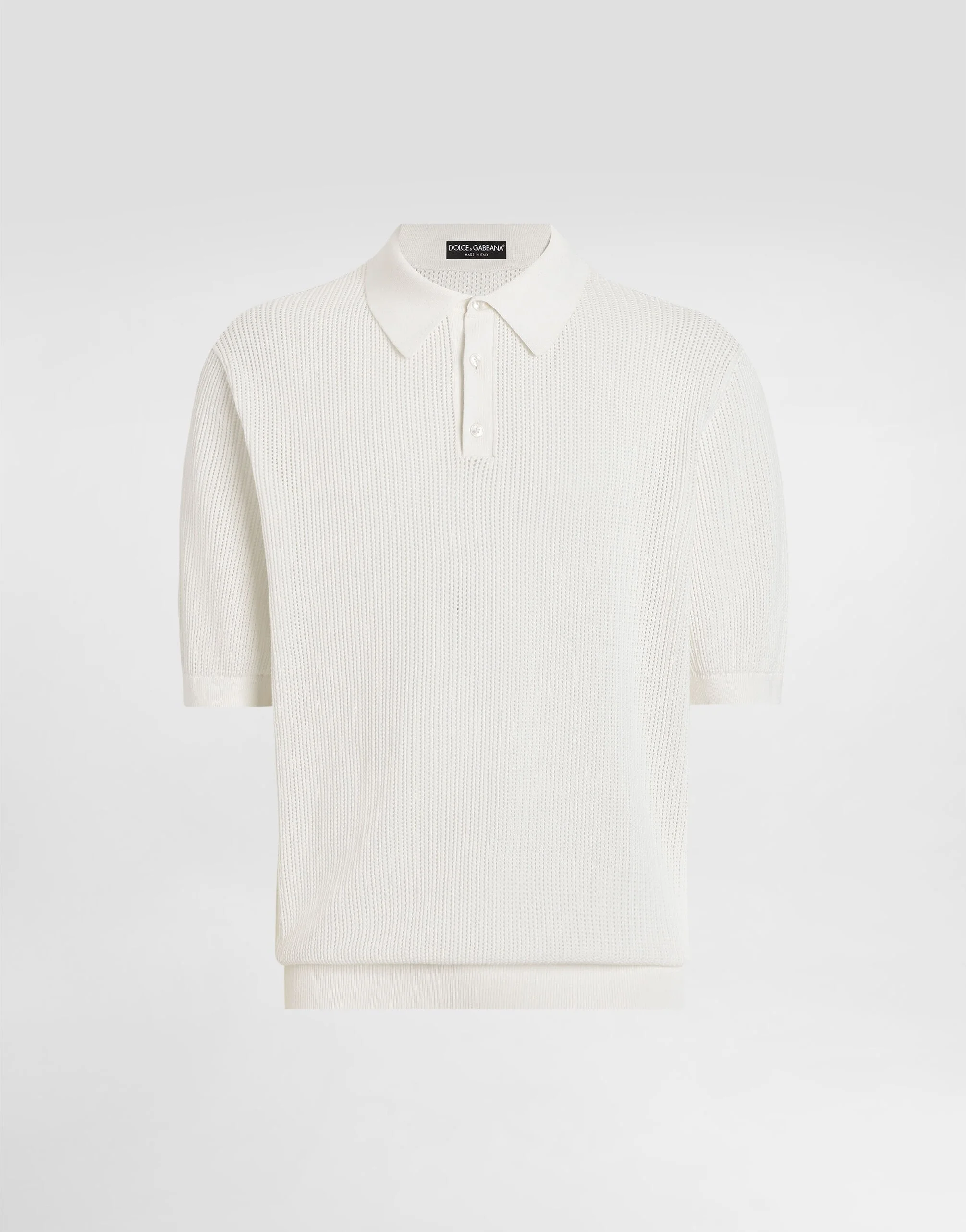 Italy and its beauty are reflected in the Men’s SS25 Collection. Woven raffia and leather give life to jackets, polo-shirts and sweaters to celebrating Italian craftsmanship. The color palette ranges from Nero Sicilia black to burgundy, contributing to conveying a sense of eternal elegance. Refined accessories complement the look: belts and loafers with hand-finished details and oversize bags, such as the Sicily, the Marlene with crocodile-effect print and the versatile Adamo tote. Short-sleeved cotton polo-shirt: • White • Regular fit • Button fastenings • Short sleeves • Ribbed neck and trims • 12-gauge knit • The piece measures 68 cm from the shoulder seam on a size IT 48 • Made in Italy External composition: 100% Cotton