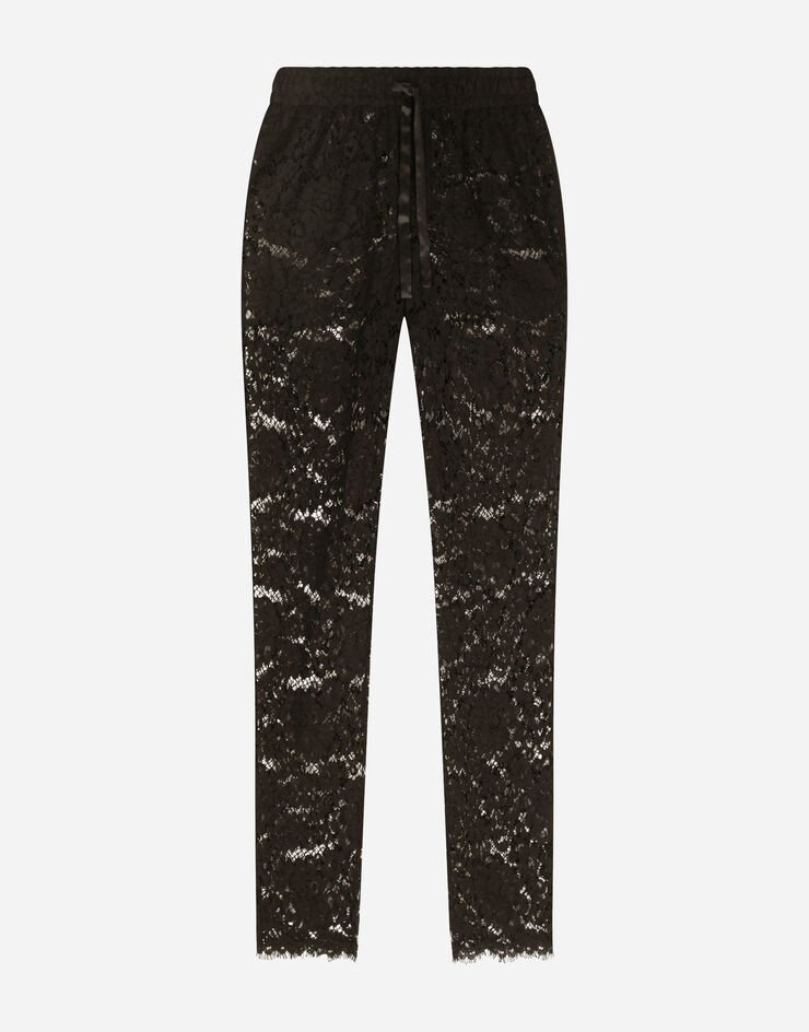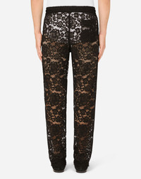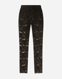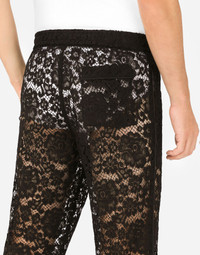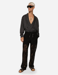 The “DG Light Therapy” fashion show is a tribute to life itself, positivity and folklore. Distinctive luminaries become wonderful photographic prints to create special, iconic pieces when combined with embroidery, crystals, sequins and jacquard designs. Lace jogging pants with satin piping: • Regular fit • Stretch waistband with drawstring • Front slant pockets and patch back pocket • The item measures 105 cm - 41.3 inches on the outer leg and the hem is 19 cm - 7.5 inches wide on a size IT 48 • The model is 185 cm - 72.8 inches tall and wears a size IT 48 • Made in Italy Care And Details External composition: 46% Cotton 41% Viscose 10% Polyamide 3% Silk