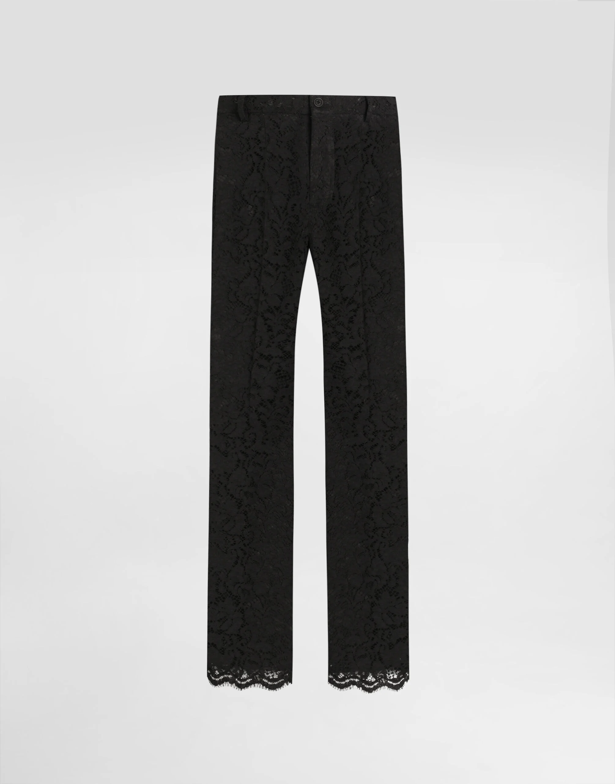 These classic and refined trousers are ideal for an elegant yet informal look, perfect for any occasion. Cordonetto lace trousers: • Black • Lined with organza • Lace belt • The model is 185 cm tall and wears a size 48 IT • Made in Italy External Composition: 46% Cotton, 43% Viscose, 11% Polyamide Internal Composition: 100% Silk