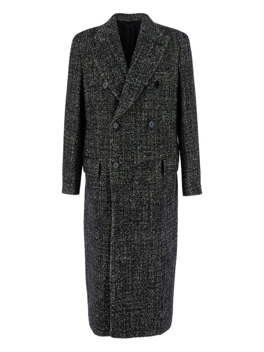 double-breasted coat Highlights - Grey - Double-breasted - Button closure - Notched lapels - Speckled pattern - Long sleeves Imported Composition Outer: Fabric 100% Washing instructions Read Manufacturer Guidelines