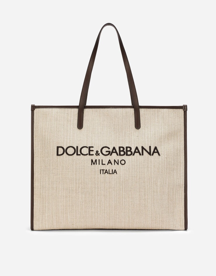 Large structured canvas shopper with Dolce &Gabbana Milano logo: • Beige • Concealed magnetic fastening • Calfskin top handles • Fabric lining and zipped pocket • Item comes with a branded dust bag • Measurements: H34.5 x W42.5 x D14.5 cm • Made in Italy Care And Details External composition: 60% Cotton 30% Linen 10% Calfskin Internal composition: 70% Cotton 20% Calfskin 10% Acrylic