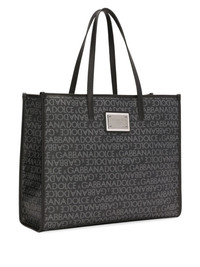 logo-plaque tote bag Highlights - Black/grey - All-over logo print - Logo plaque to the front - Two long top handles - Magnetic fastening - Internal zip-fastening pocket - Main compartment Made in Italy Composition Lining: Cotton 60%, Polyurethane 15%, CALFSKIN 10%, Polyester 10%, Acrylic 5% Outer: Cotton 30%, Polyester 25%, Polyurethane 20%, Nylon 15%, CALFSKIN 5%, Viscose 5%