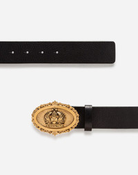 Tumbled leather belt with vintage brass plate featuring crown embellishment: • The belt is 40 mm - 1.6 inches in height • Vintage brass plate • Dome popper fastening beneath the plate •Nickel-free buckles and hardware • Made in Italy Care And Details External composition: 100% Calfskin Internal composition: 100% Calfskin