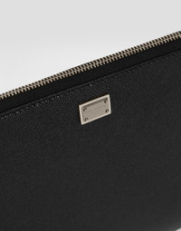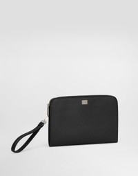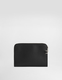 Elegance and functionality come together in the Sicily clutch, made of fine Alpine calfskin, perfect for those who want a sophisticated and timeless style. Alpine calfskin clutch: • Black • Leather handles • Ruthenium electroplating zip closure • External customization with bigalvanic plate • Internal customization with stamp and film • Interior with flat pocket • Item equipped with a logo bag and a pre-assembled box • Measurements: H 17.5 x W27 x D3 cm • Made in Italy External Composition: 100% Calfskin Internal Composition: 100% Cotton