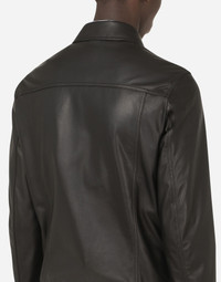 Lambskin denim-style jacket. • Regular fit • Shirt-style collar • Branded metal buttons on the front • Welt pockets and flap patch pockets with button • Fabric label with Dolce&Gabbana logo • Adjustable straps on the hem • Unlined • The piece measures 61 cm - 24 inches from the rear collar seam on a size IT 48 • The model is 185 cm - 72.8 inches tall and wears a size IT 48 • Made in Italy Care And Details External composition: 100% Lambskin