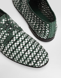 A symbol of timeless elegance, these leather Derby shoes stand out with the quality of their materials and their flawless style, perfect for every occasion. Woven goatskin Derby shoes: • Multi-colored • Satin insole with branded label • Branded leather sole • Waxed laces • Item comes with a dust bag • Packaged in a branded box • Made in Italy External composition: 100% Goatskin Internal composition: 84% Lambskin 16% Goatskin